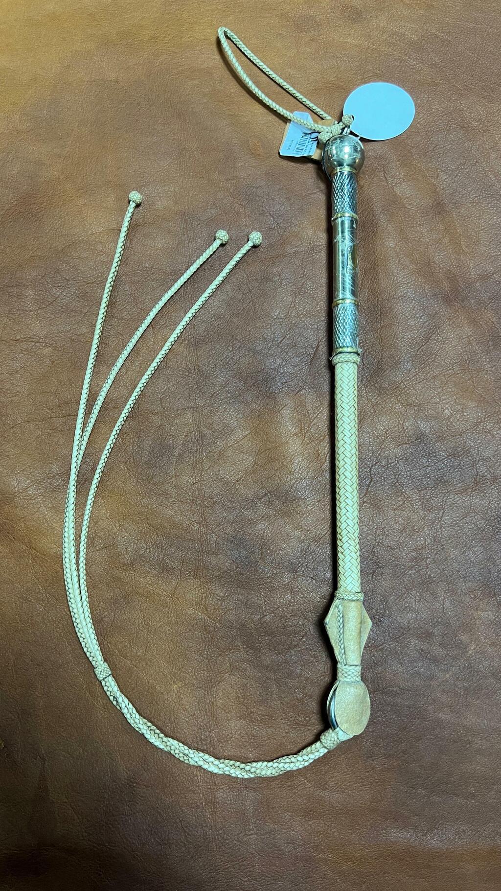 REBENQUE DE COURO CRU COM CABO DE ALPACA E SOITEIRA TRAMADA